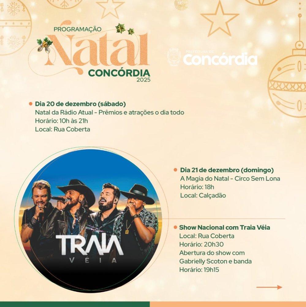 A agenda contará com apresentações culturais, teatrais e circenses em diferentes locais. Também está confirmado um show nacional com o grupo Traia Véia.